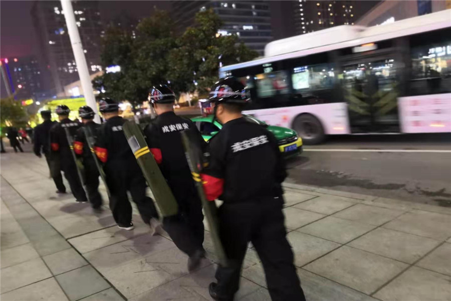 2019年10月9日樊城區(qū)公安分局內(nèi)保大隊(duì)陳鵬隊(duì)長(zhǎng)依然堅(jiān)守不放松“不忘初心、牢記使命”主題教育活動(dòng),并組織樊城區(qū)漢江派出所民警和戎安保安服務(wù)有限公司保安隊(duì)員,在樊城區(qū)人員密集場(chǎng)所開展義務(wù)巡邏。
